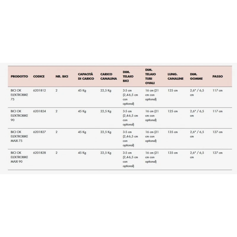 - Canalina da 125 cm, interasse massimo della bici 117 cm